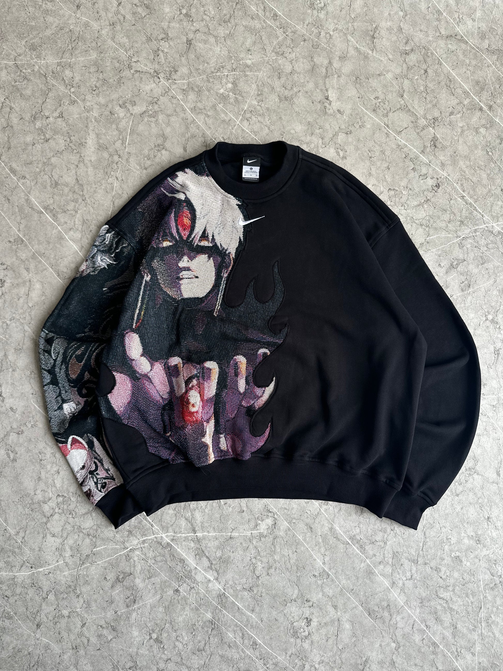 Evil eyes reworked 2side with Okarun sleeve on custom nike center Sweatshirt Black