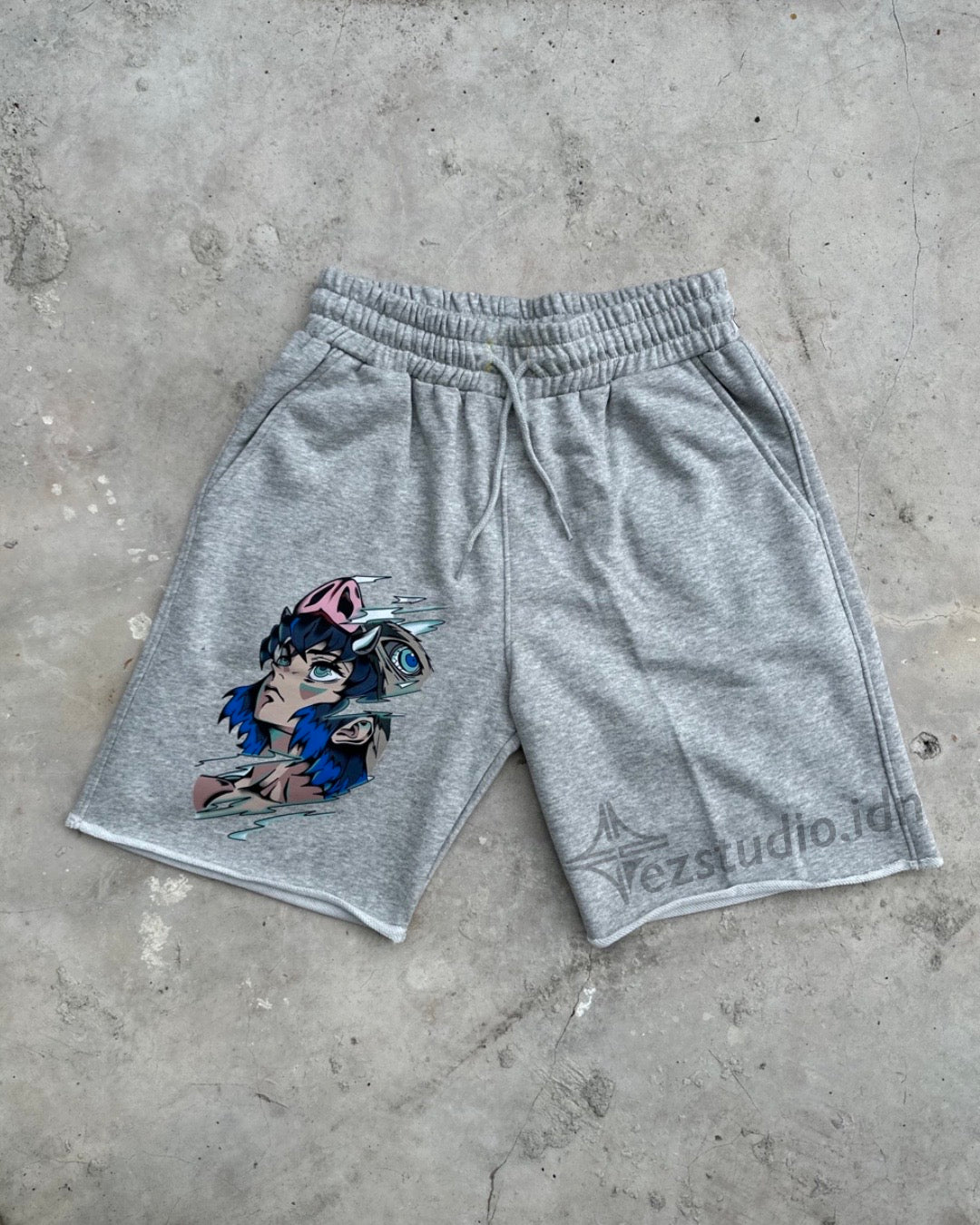 EZStudio Shorts Cotton French Terry embossed with Direct Transfer Film Kimetsu no Yaiba Graphic