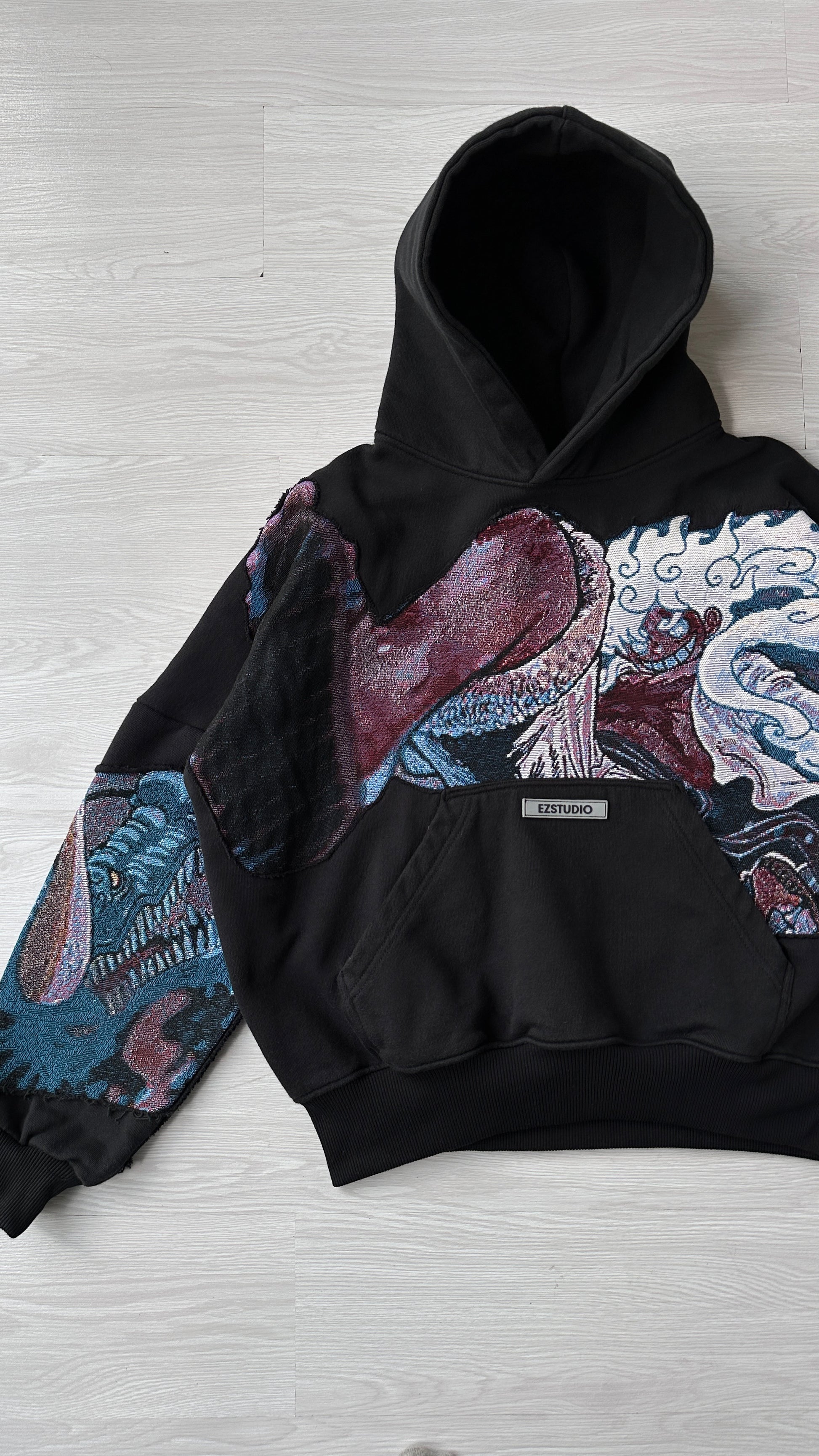 Luffy vs Kaido 3way Reworked with EZ Blank Hoodie Black