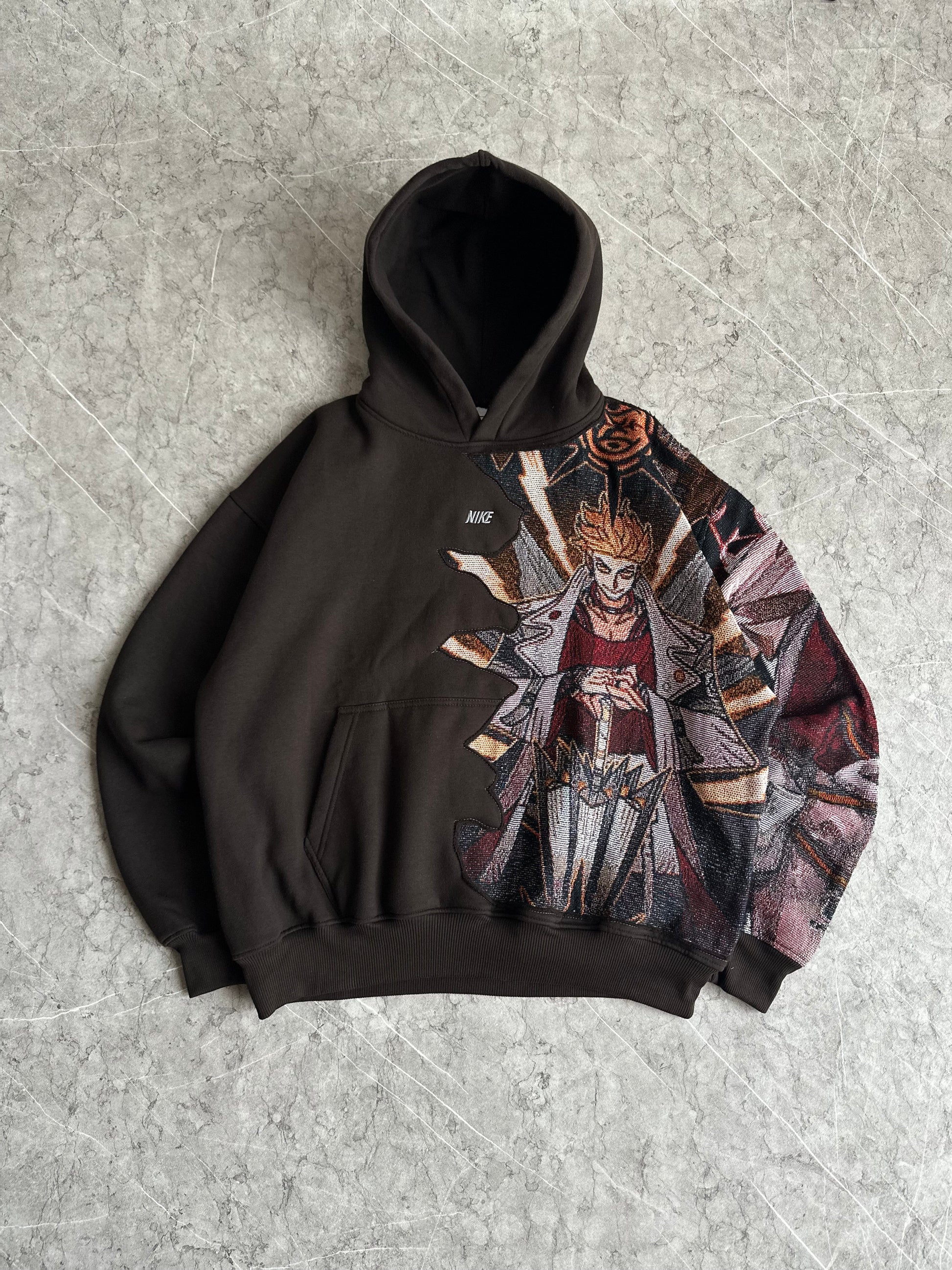 Enjin reworked 2side on custom boxy nike spellout Hoodie dark Brown