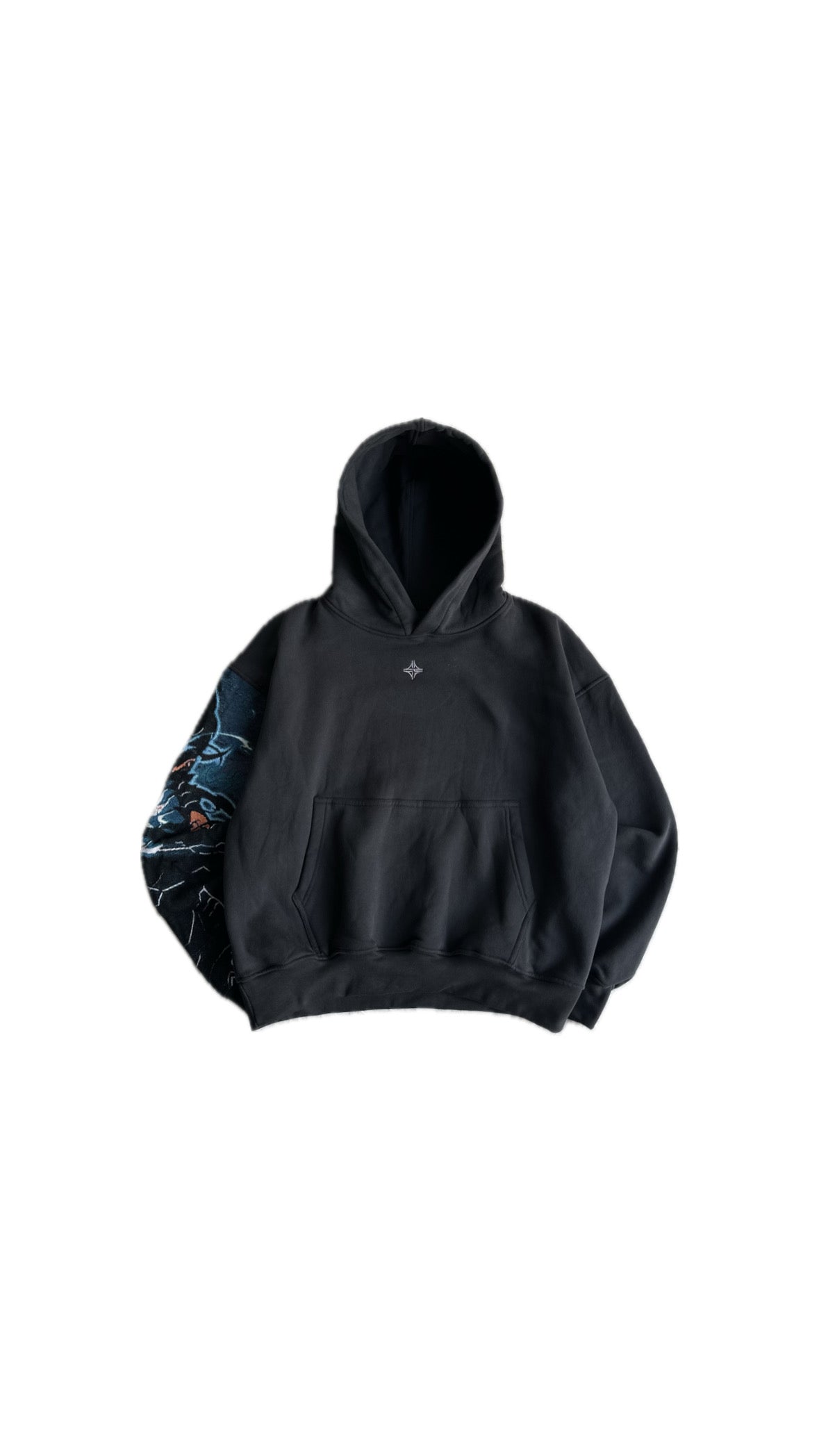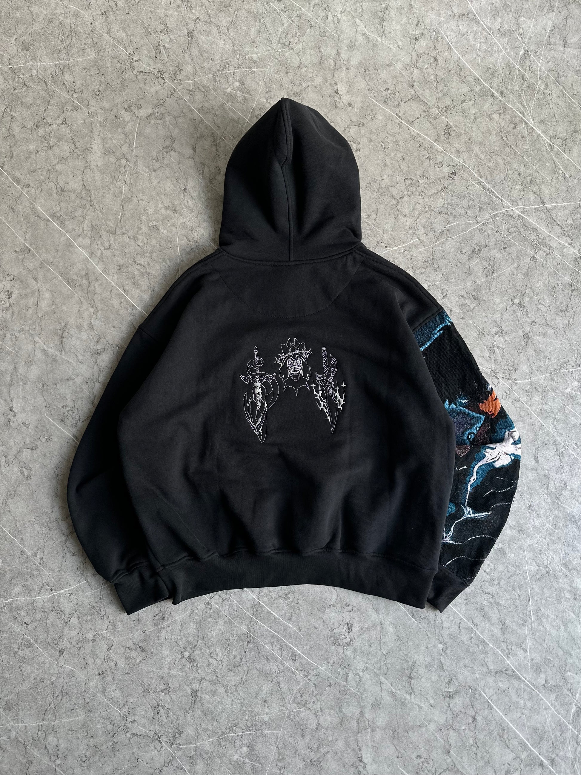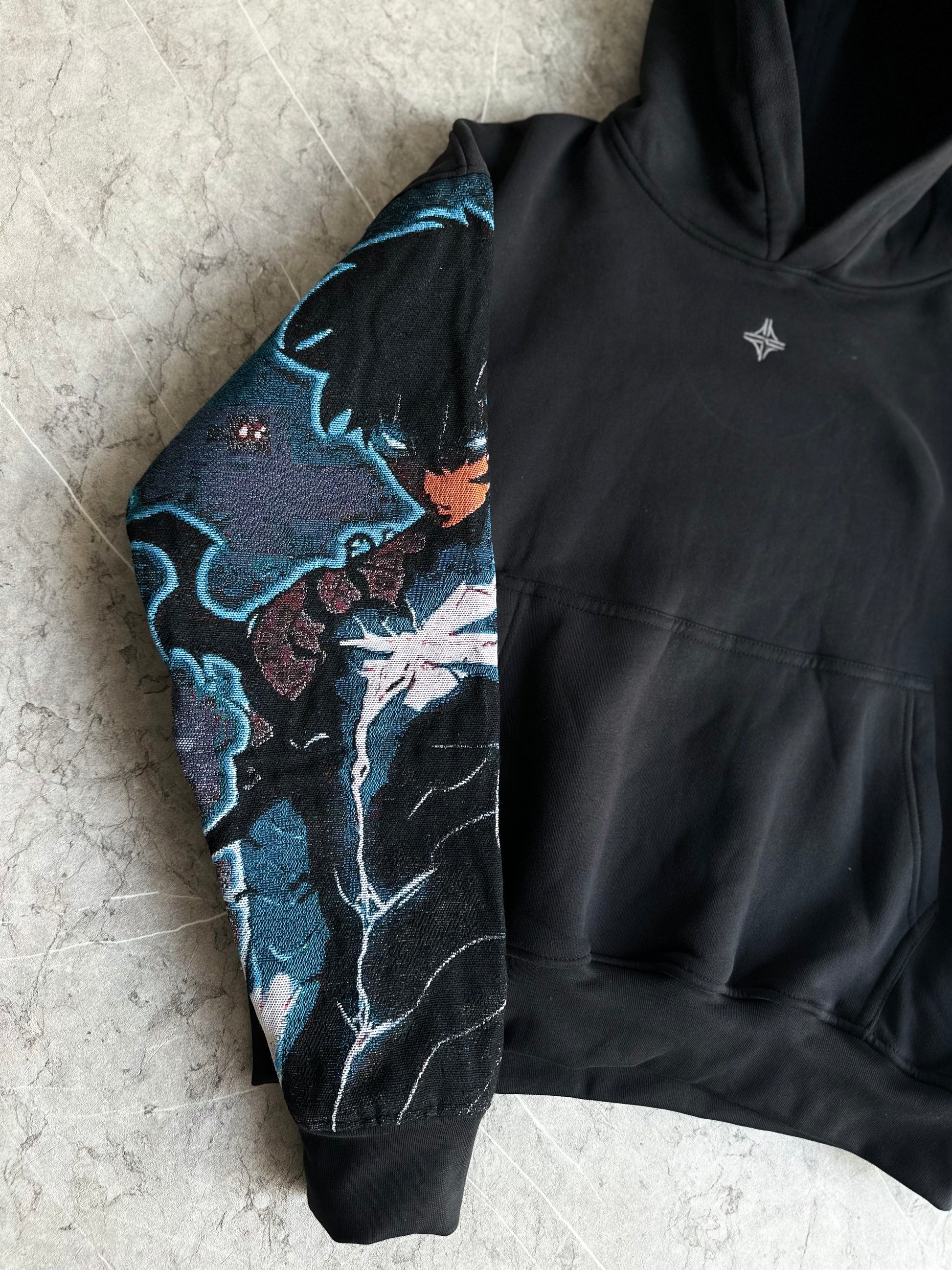 Sung Jinwoo Sleeve with EZ Black boxy hoodie + embroidered icon back