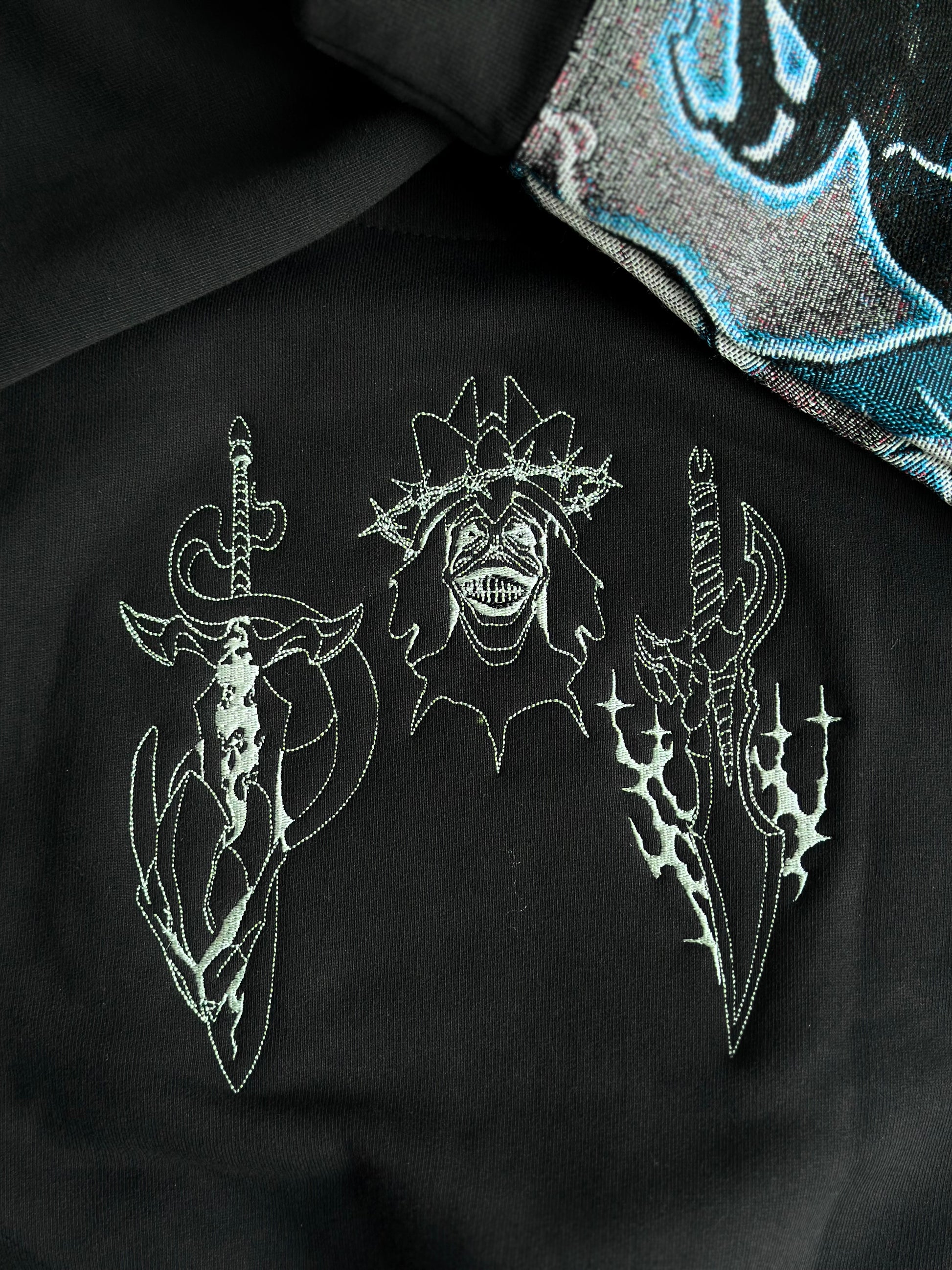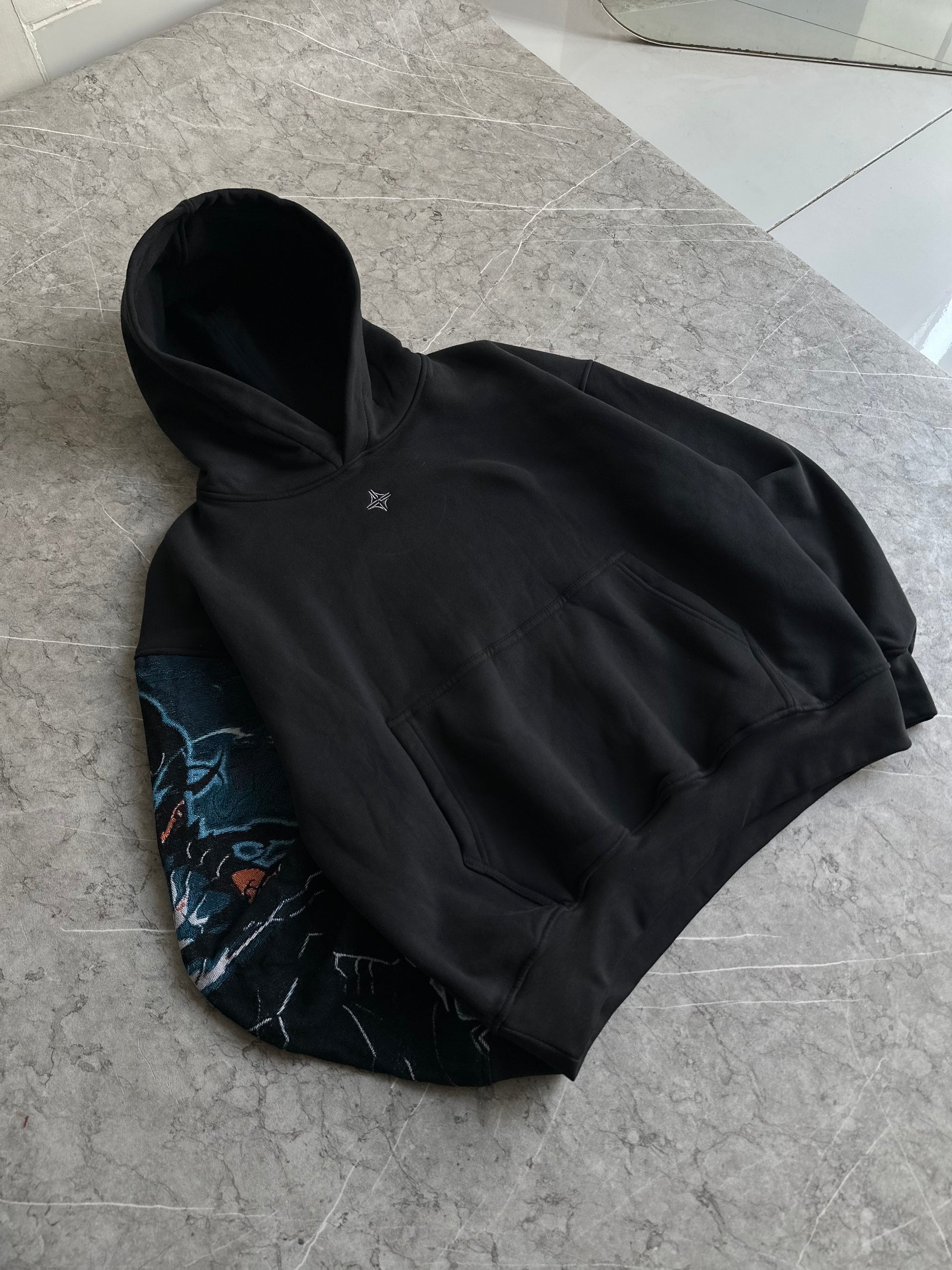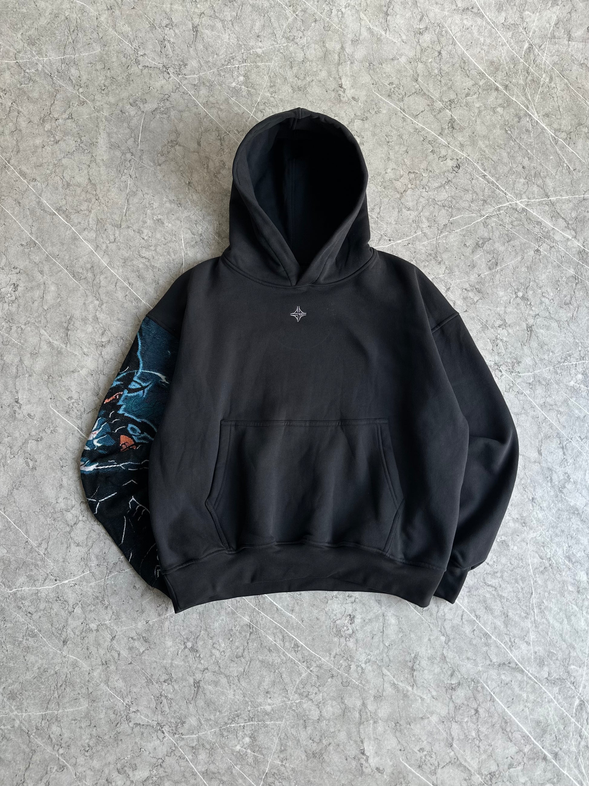 Sung Jinwoo Sleeve with EZ Black boxy hoodie + embroidered icon back