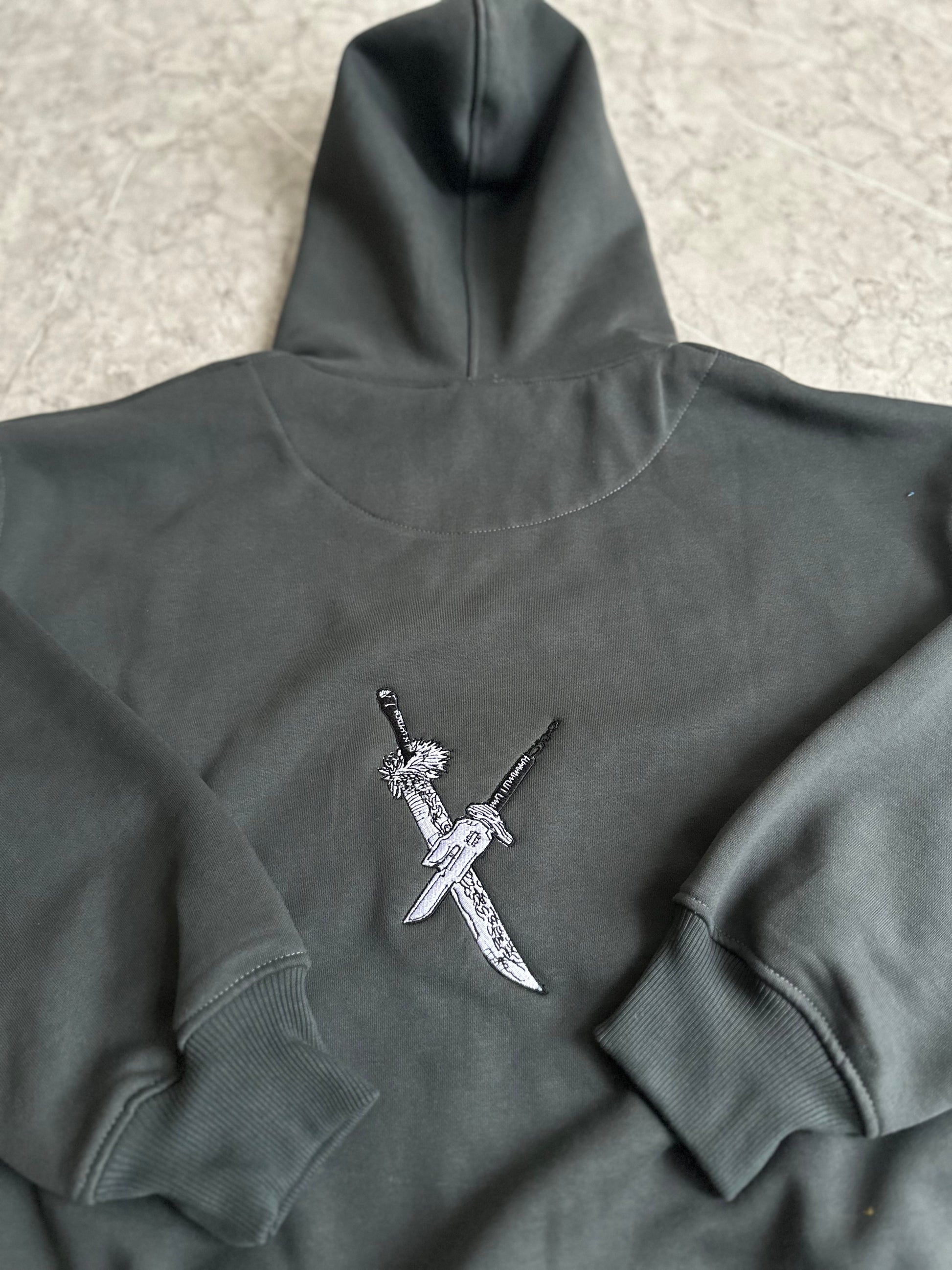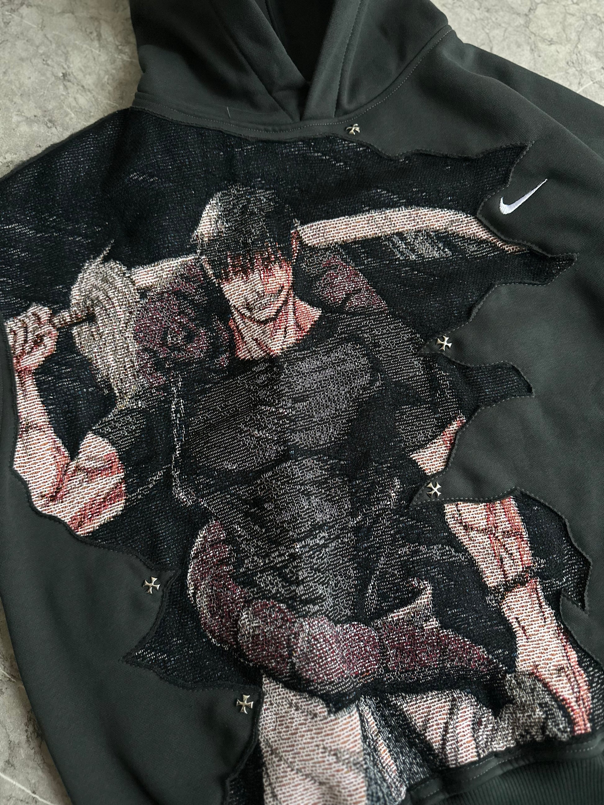 Toji Fushiguro reworked front on custom boxy nike side swoosh Hoodie Dark Grey