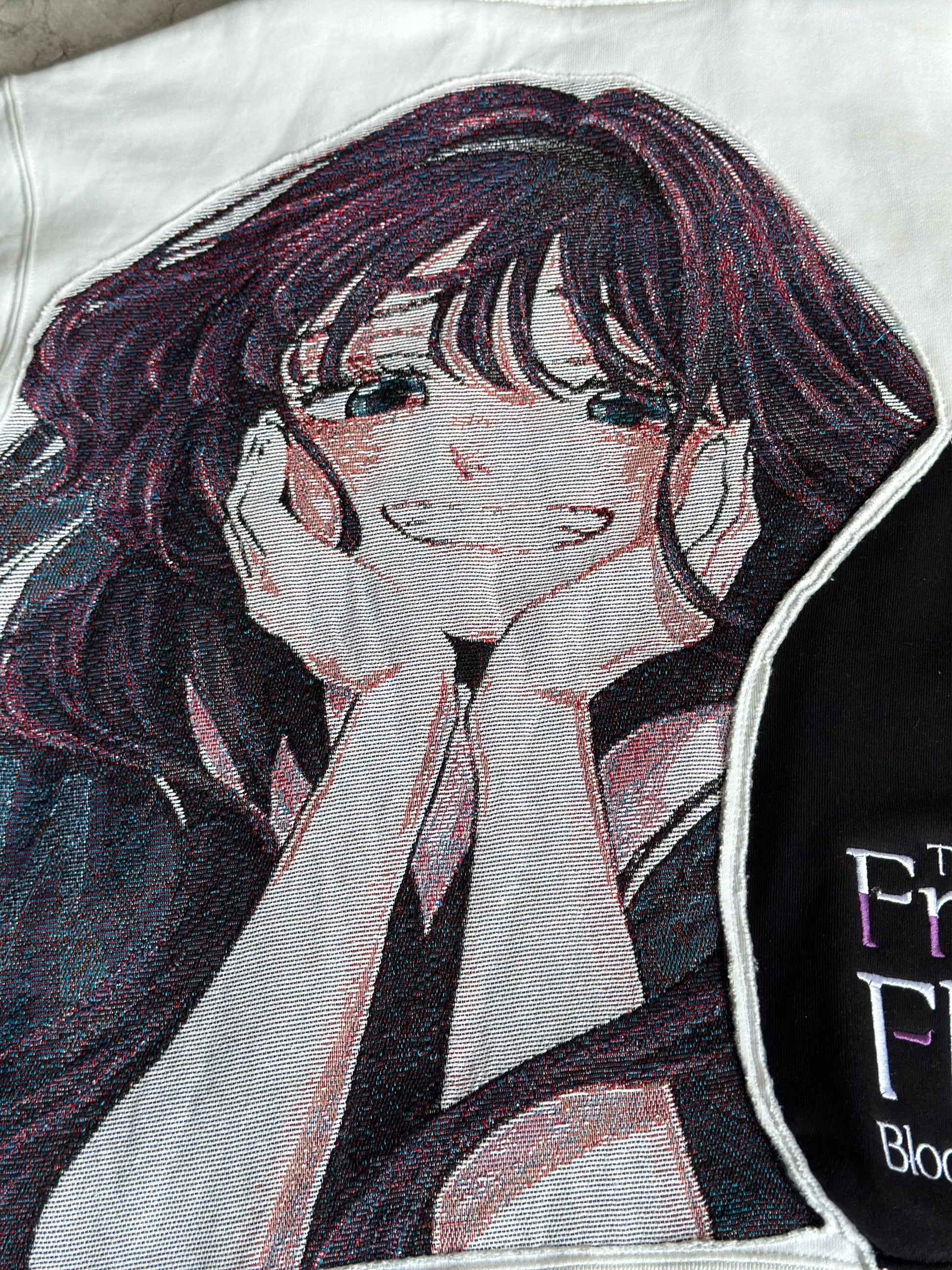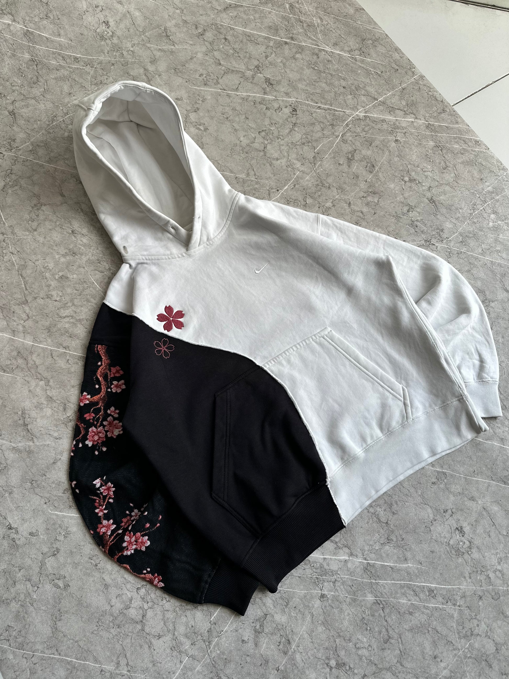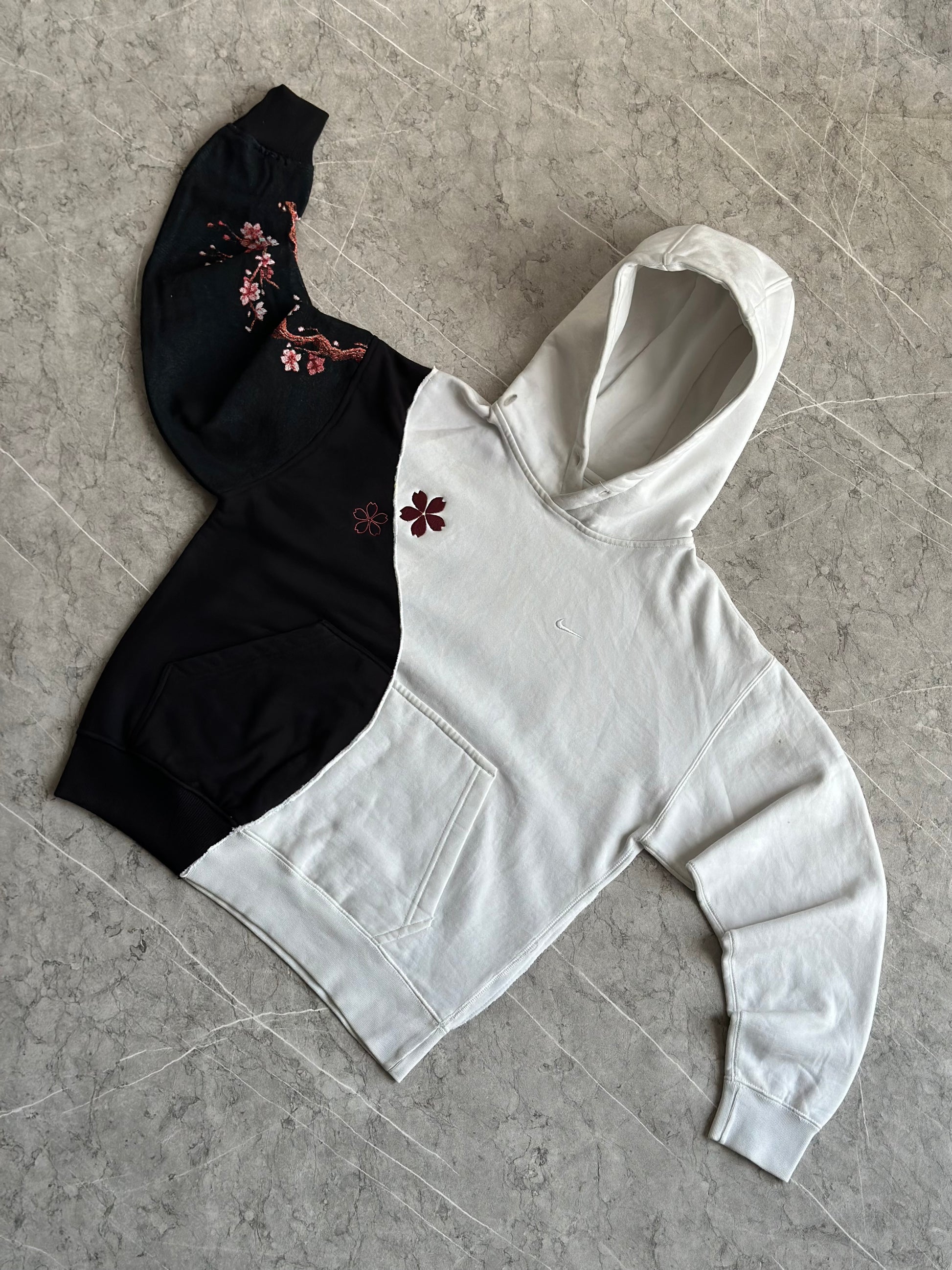 Waguri Kaoroko reworked 2side on nike small swoosh hoodie white half mixed with 330gsm black hoodie